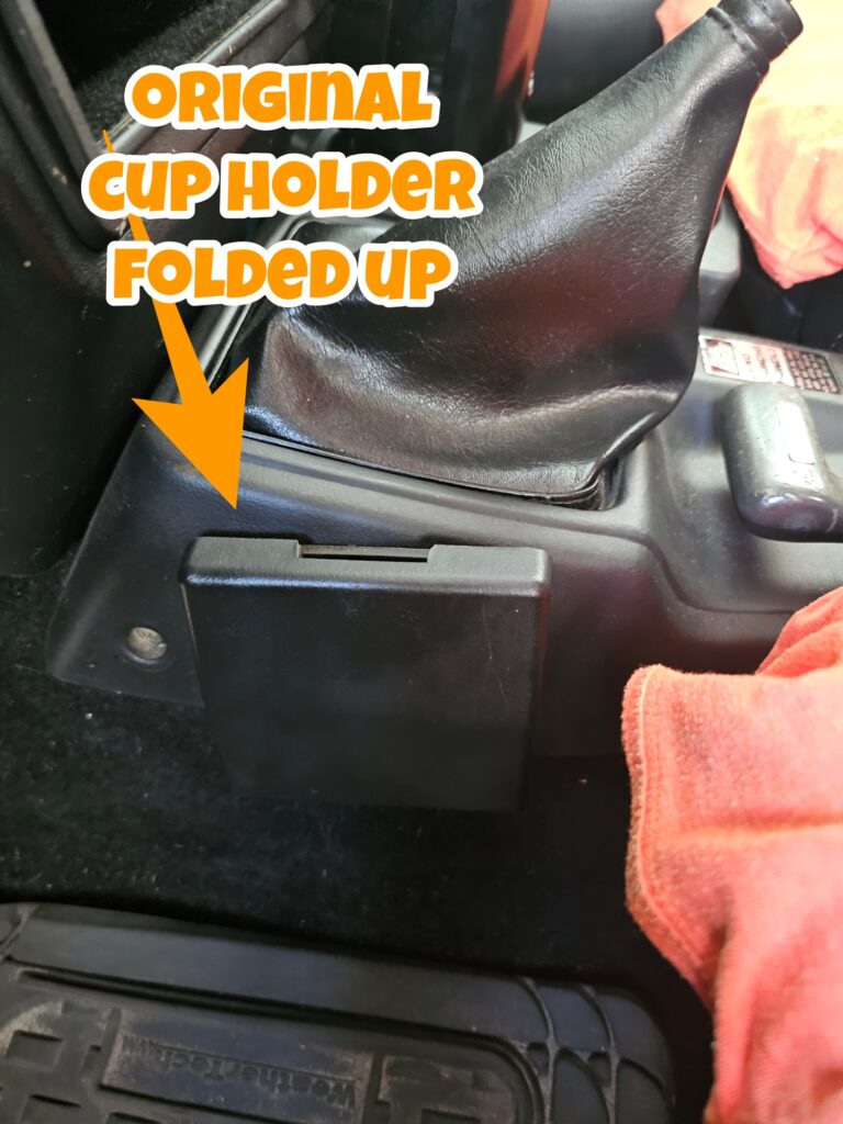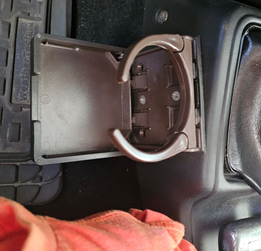 Original cup holder on driver side that folds down to use